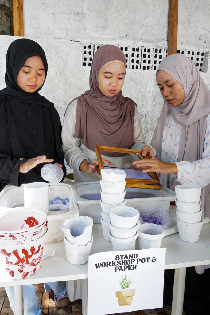 Participants learned how to recycle used paper into eco-friendly plant pots and creative calendar products.